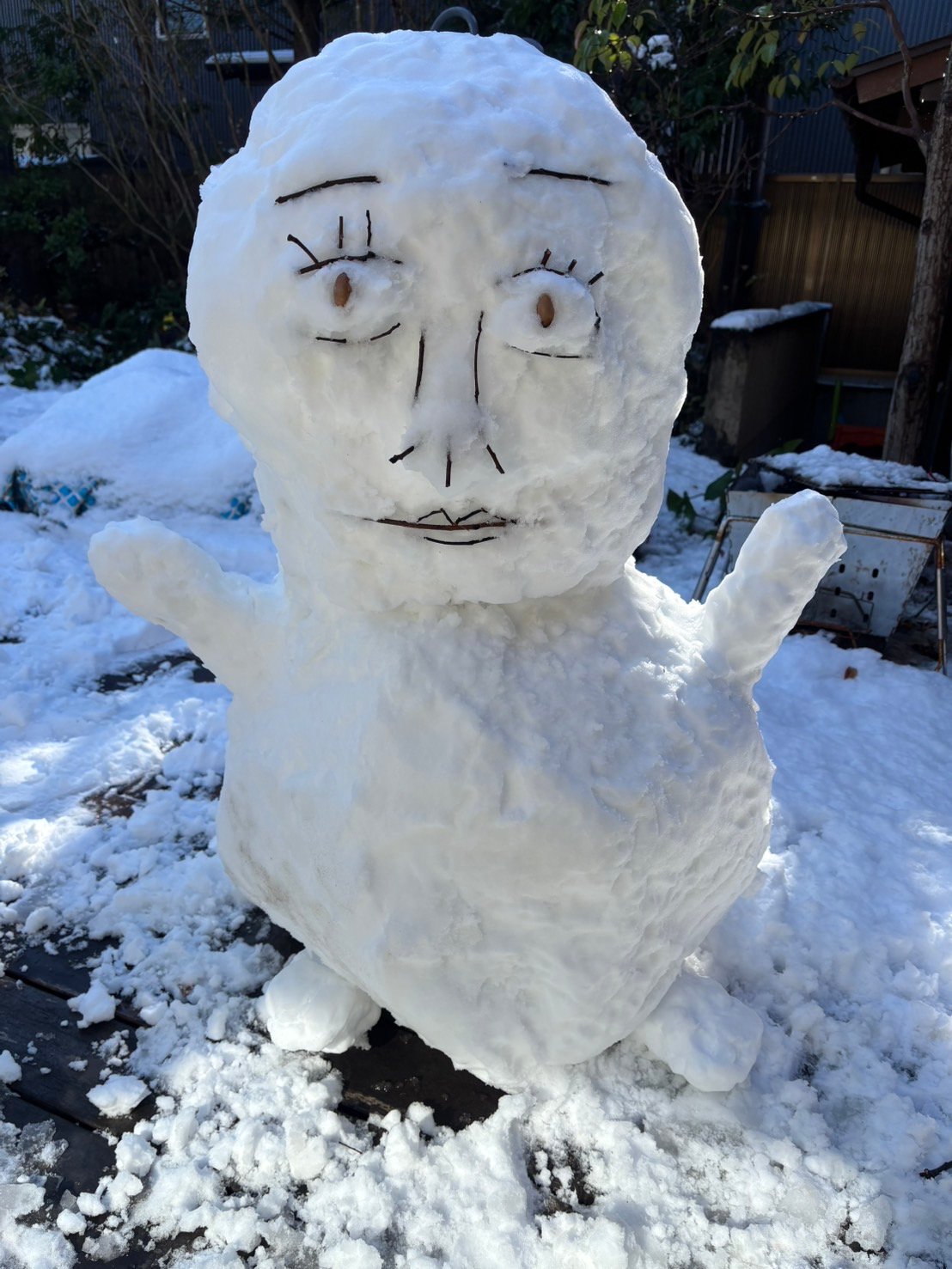 学校がお休みだった子供が庭に雪だるまを作りました♪