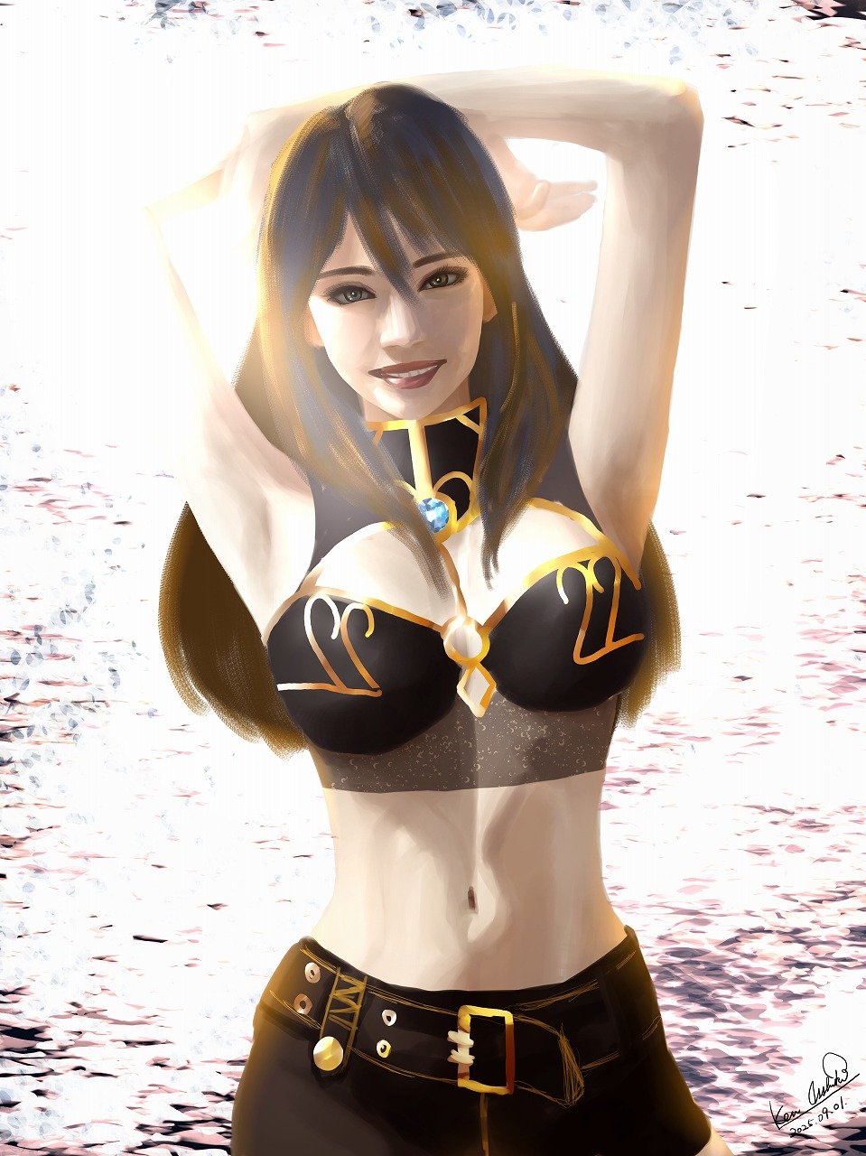 胸もちょっと不自然で、腕をこれだけあげていると