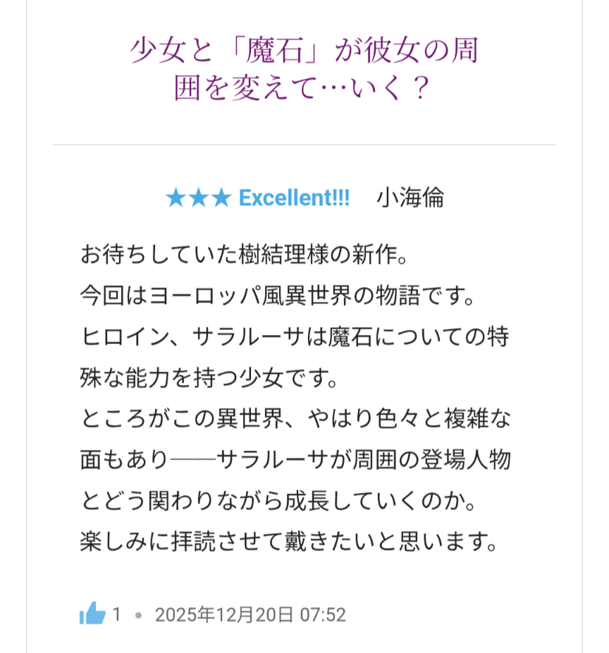 だからこそ、小海倫様からの☆レビューが本当に感謝です!
