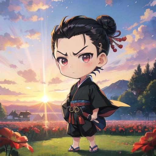 ヒーローの三虎さんのちびキャラAIイラストをペタリと……(裾が短いのはご勘弁を……)