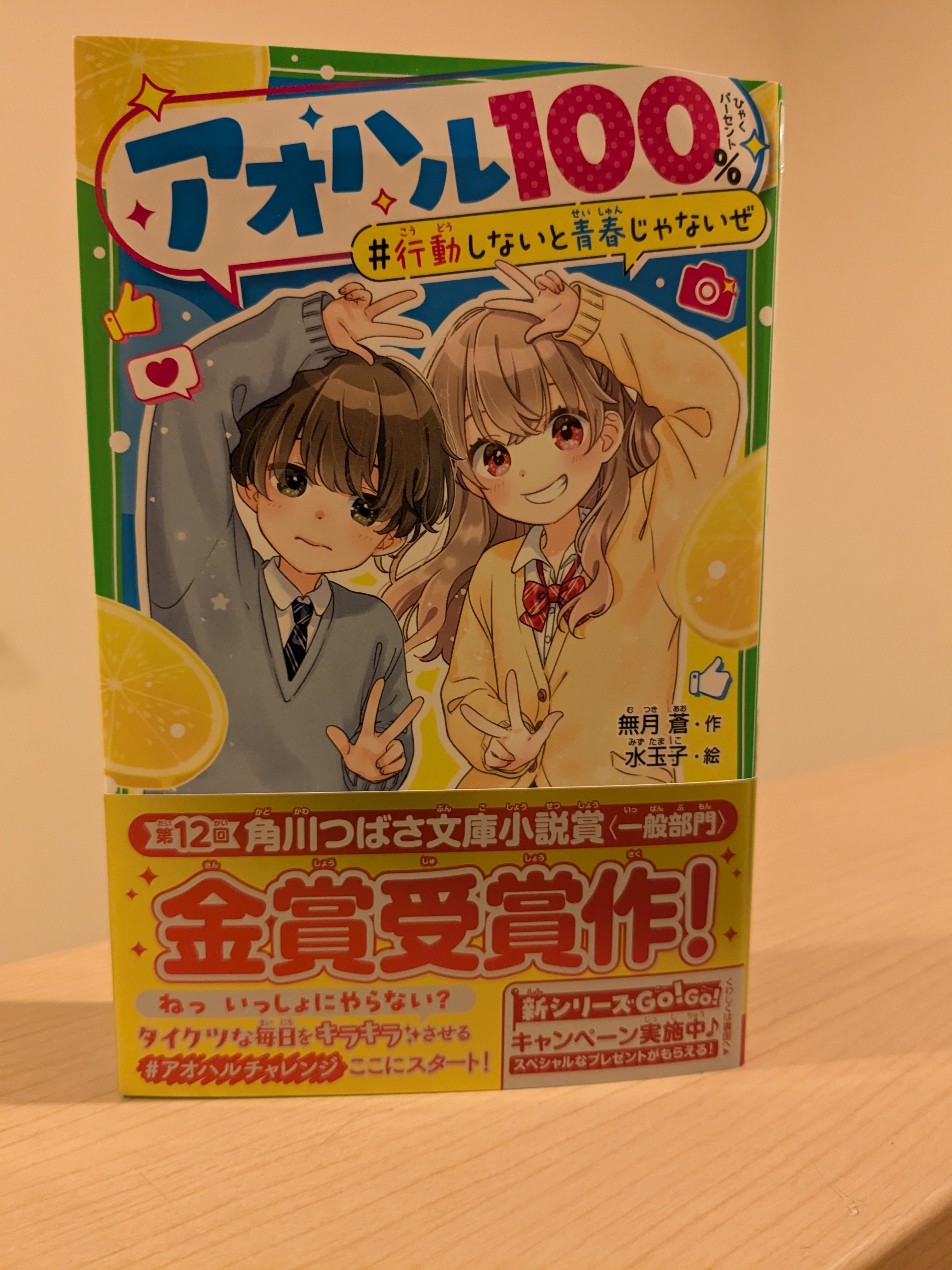カクヨムで大変お世話になっている無月蒼先生(無月弟様)様の第12回角川つばさ文庫小説賞金賞受賞作、『アオハル100% #行動しないと青春じゃないぜ』が届きました~!ヾ(*´∀`*)ノ