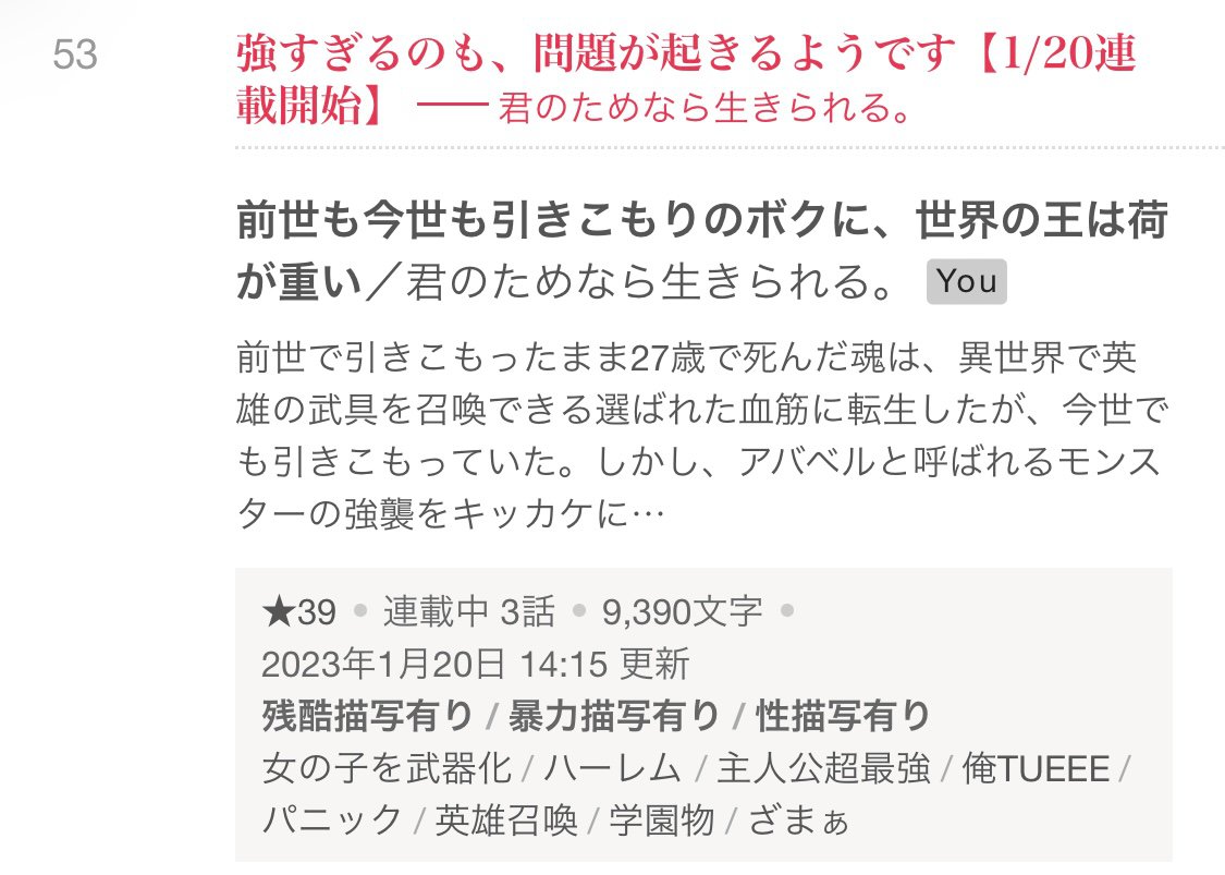 昨日投稿した新作が、皆様の星とフォローのおかげさまで、日刊53位にランクインしました!