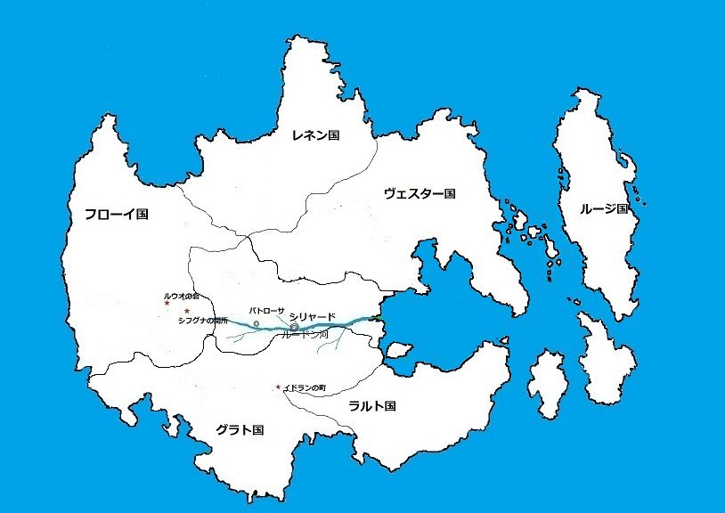 本編第一部終了のアトランティス大陸です。中原の大国のシュレーブ国やゲルト国は分割併合されて消滅しています。