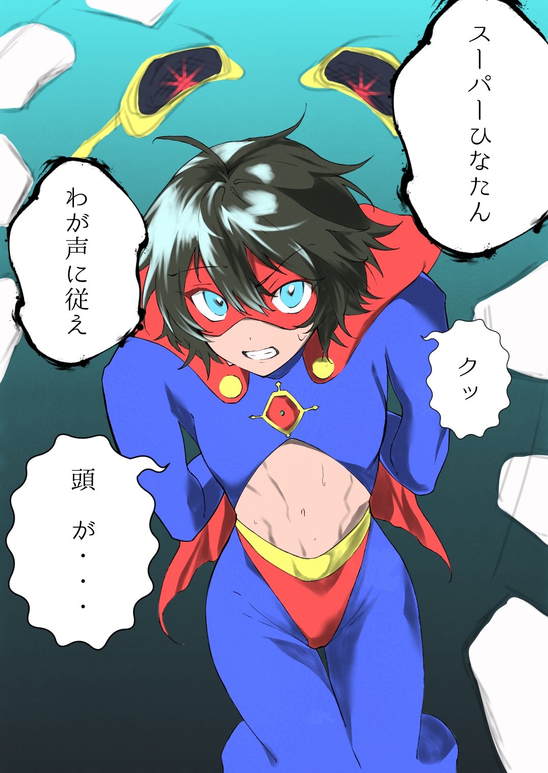 自作小説&漫画に登場するスーパーヒーロー・スーパーひなたんこと翔日向(かける ひなた)のイメージ画(塗り途中2)です。