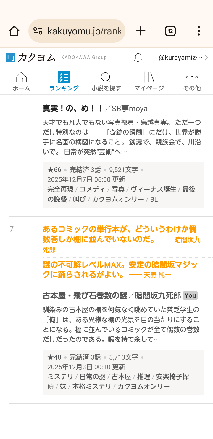 ジワジワ順位を上げて、週刊ランキングミステリ短編で7位まで来ました!!ミステリ総合でも10位にランクイン!!