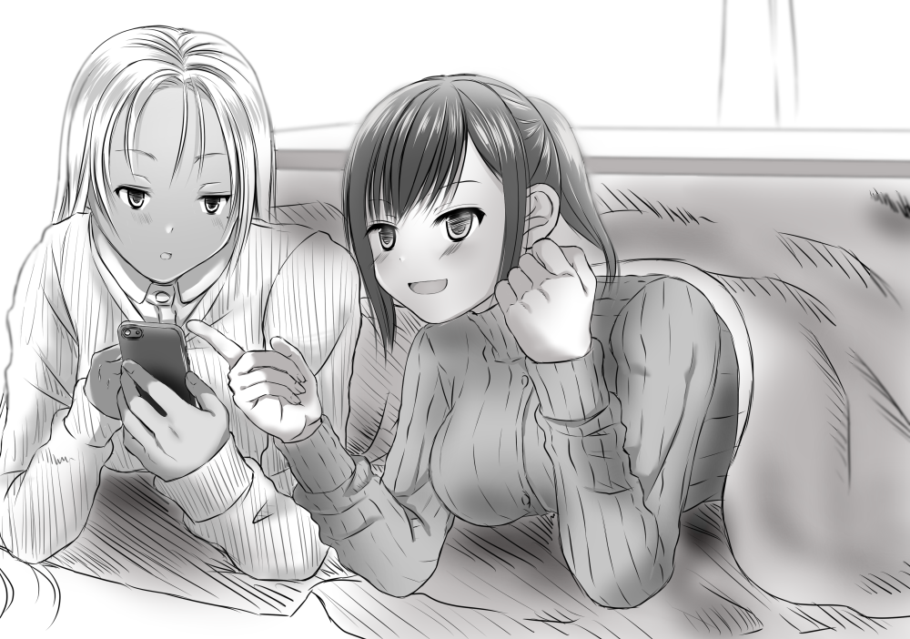 イラストはこたつむりと化した彰子と皐月です。年末でのんびりいちゃつきながらスマホゲームでもしている最中だと思います。