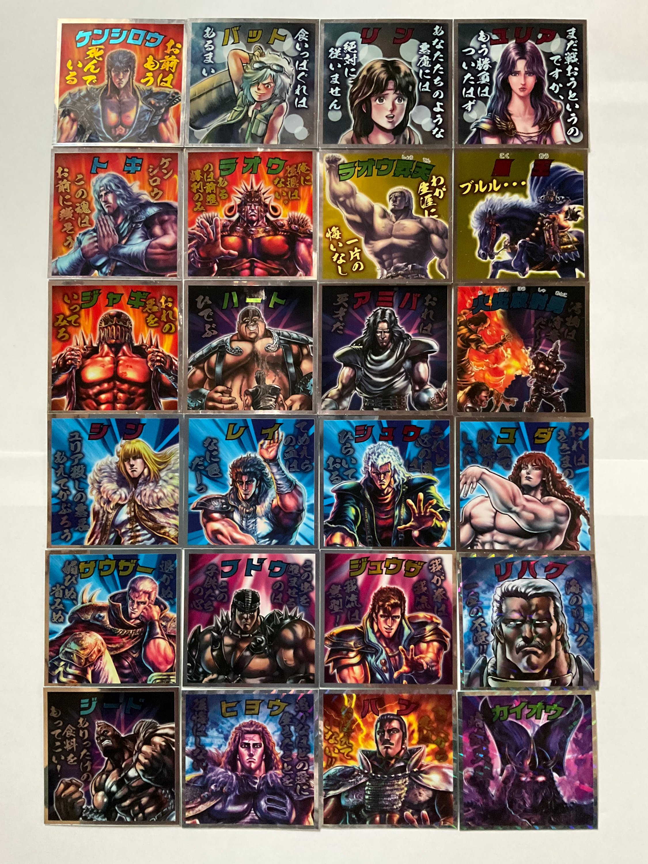 この感謝の気持ちとして、↓↓↓にひそかにコレクションしていた「北斗の拳シール(24種)」の画像をアップしておきます。