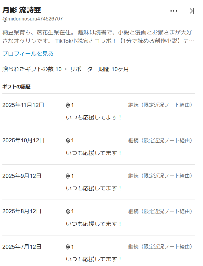 月影 流詩亜様からもギフトを頂戴いたしました🎉