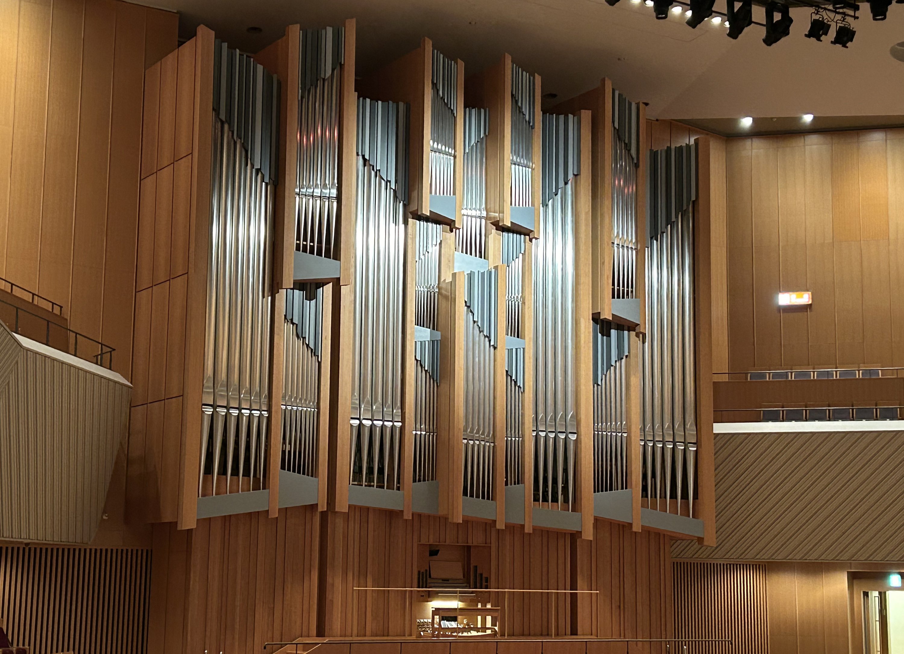 ↓ミューザ川崎のパイプオルガン。ストップ数70強、パイプ総数は5,000本を越えます。
