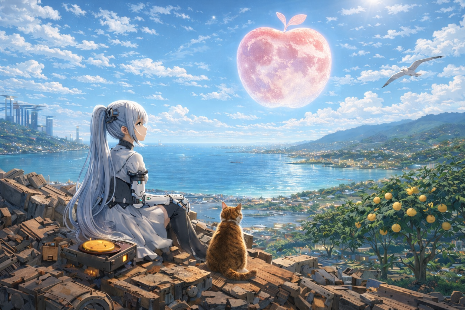 果実の月の下、野良猫はたい焼きの夢を見る。イラスト