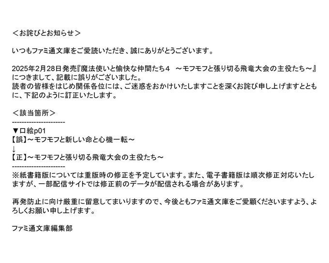ファミ通文庫編集部より記載の誤りについて公式発表がありました