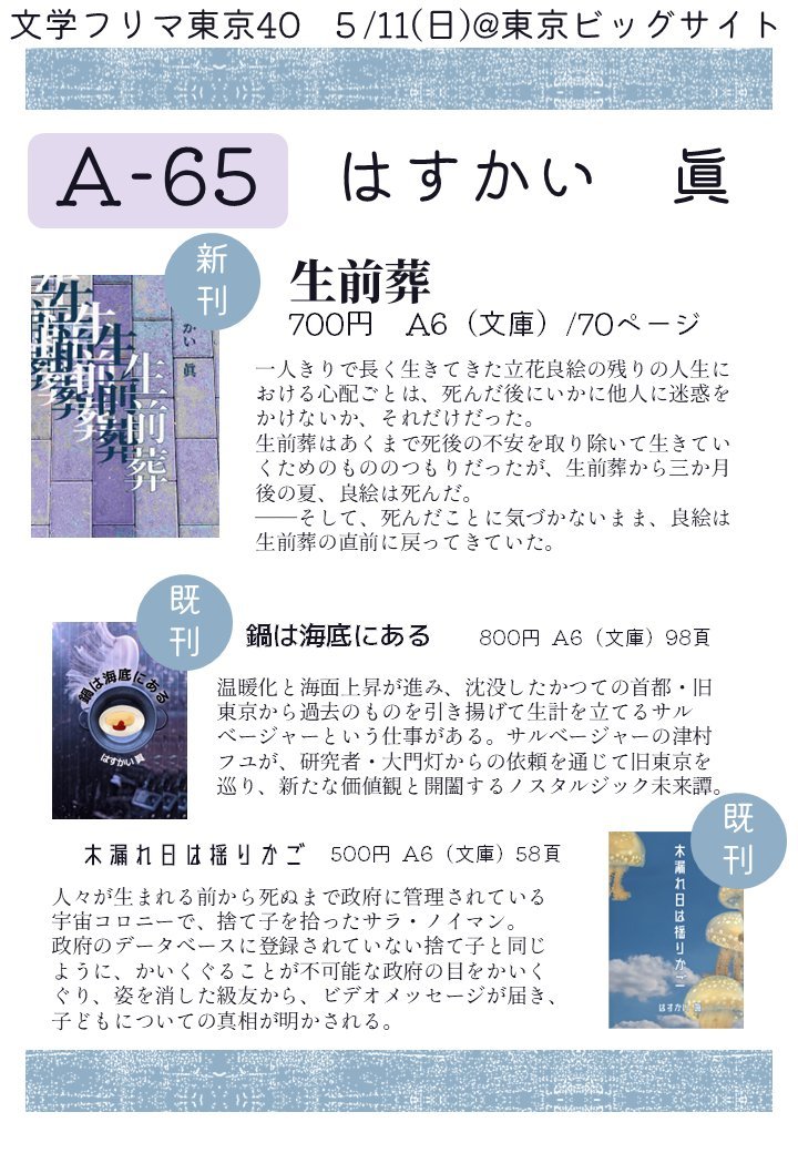 告知が遅れましたが、今週末5/11(日)に開催される文学フリマ東京40にでます!