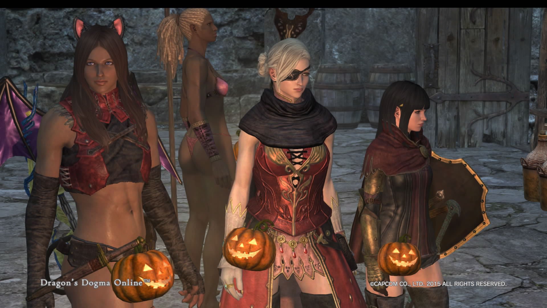 画像はDDONのハロウィンシーズンに撮ったポン子たちとのスクショです。左端のネコ耳コウモリ翼マッチョ♀が覚者(自キャラ)です。