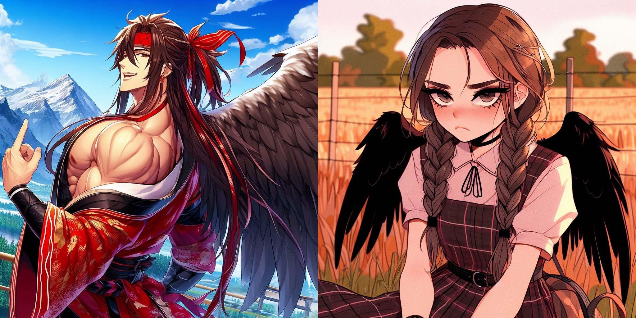 そして今回分の画像。同じく『マレ来た』第六章から、天狗衆の無憂(左)と絵馬(右)のAIイメージです。傾奇者の美丈夫と、委員長タイプの隠れミーハー娘が旅に同行します。