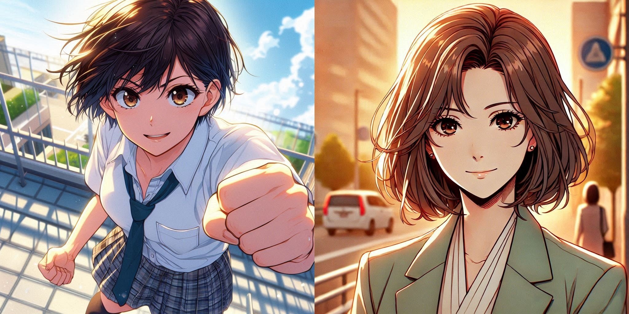 【異色百合コメ】🏫シンプルに連載お知らせです👩👧(AI画像:主人公母娘再掲)