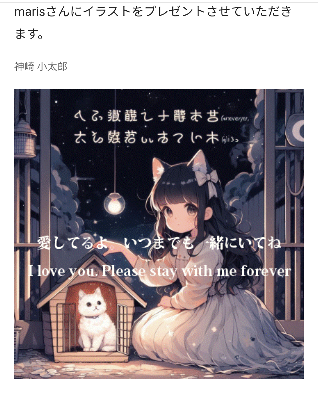 まさか、自分がイラストをいただけるなんて思ってもいませんでしたので、本当にびっくりしました。夢のようです。