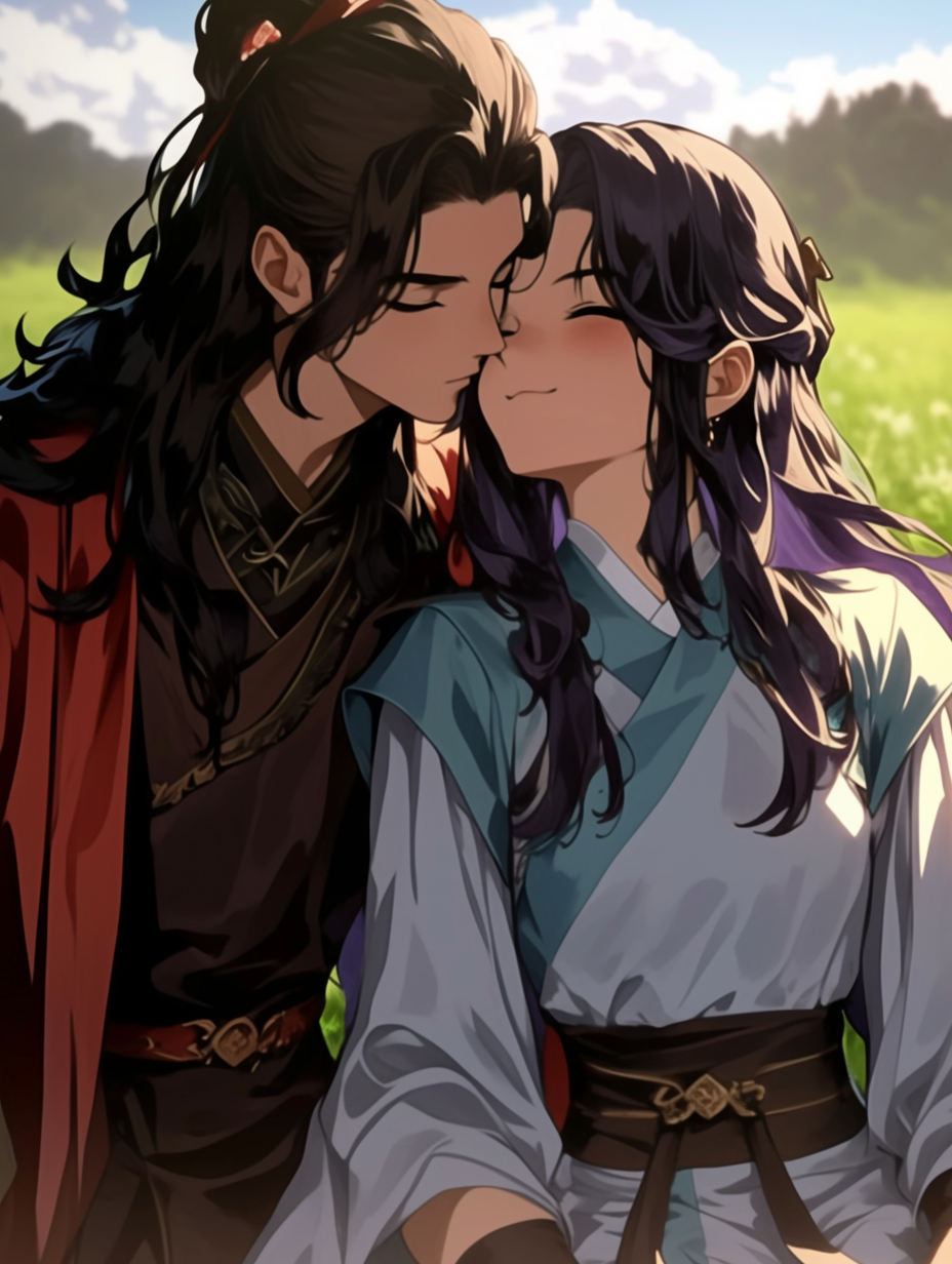 AI生成です。私のイメージでは、もう少し距離を離してほしかったのですが………御景見戸売の笑顔の表情が『純真無垢』な感じでよかったのでこのイラストを挿絵に決めました。