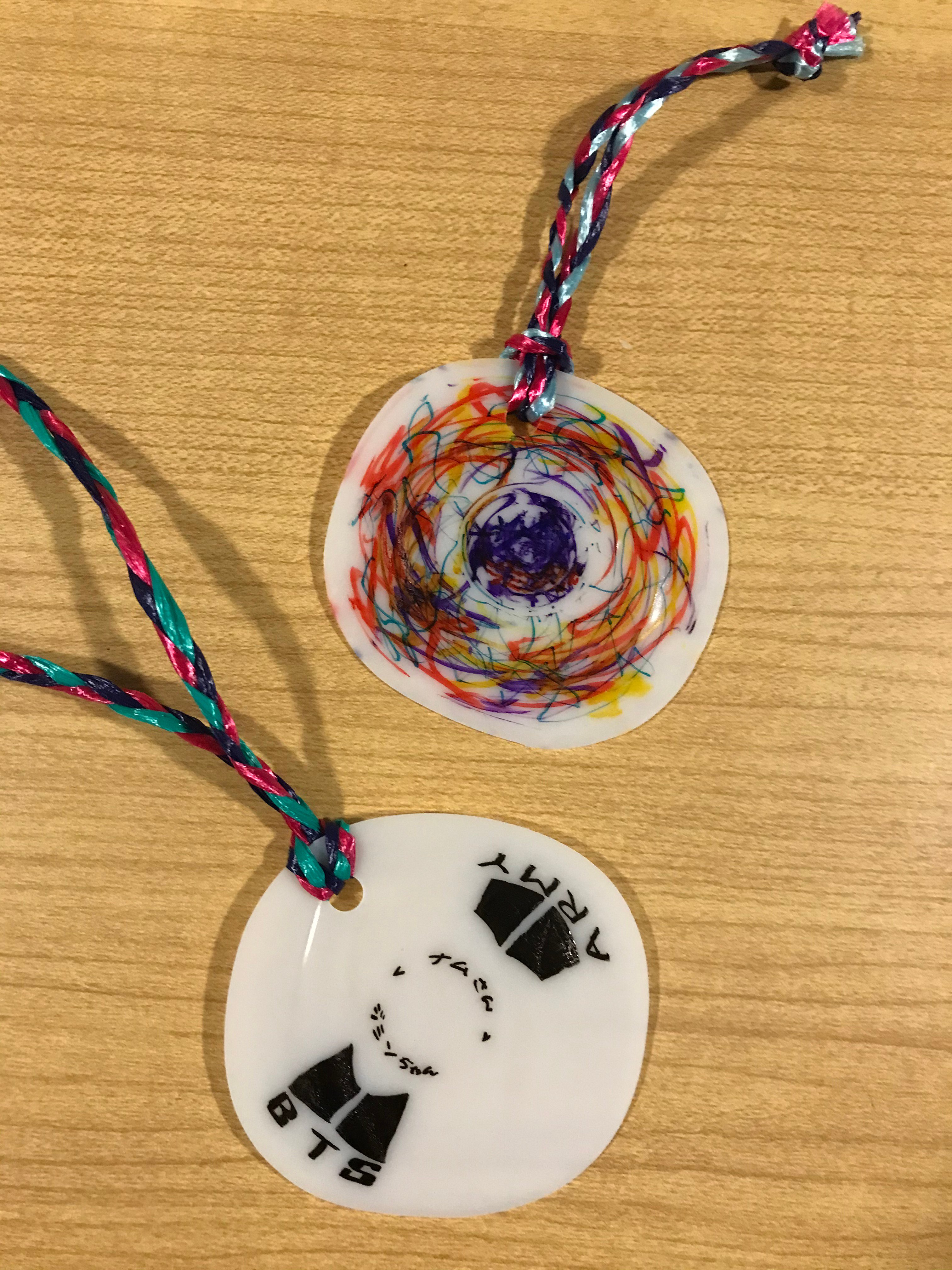 さあ下の写真ですが、これは少し前に私が通っている児童館で作った”バンタンキーホルダー”です✌
