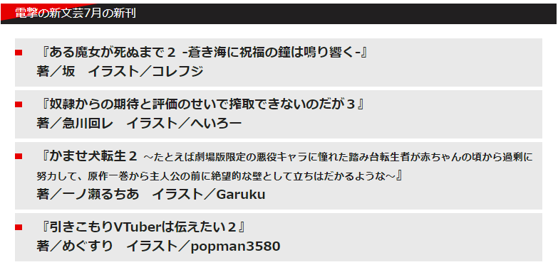 添付画像の電撃の新文芸7月の新刊の通りです。