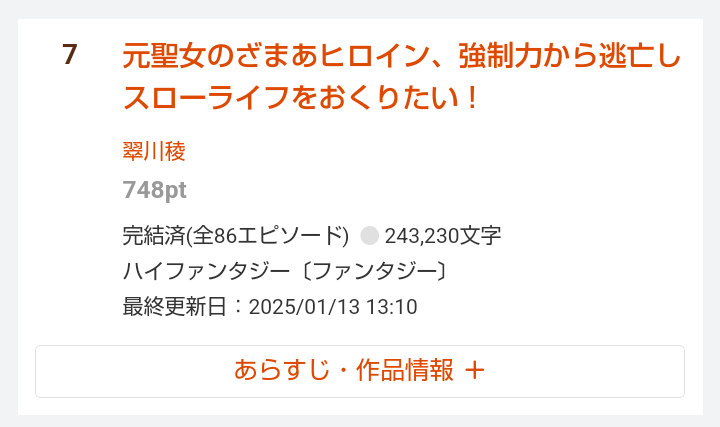 この子も今なろうでジャンル7位キタコレ!!!