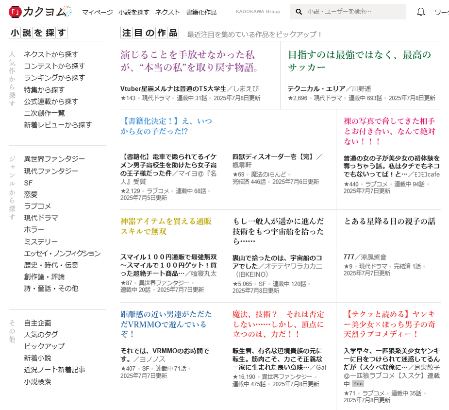 また、ありがたいことに【入スケ】が初めてカクヨムトップページの「注目の作品」に掲載されました。