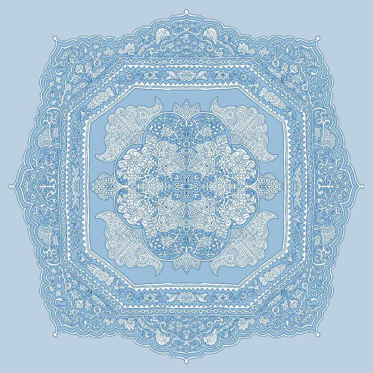 彼らを取り巻く山、川、空、風といった周辺環境、日々口にする食べ物、目にする動物(特にヤギや羊、ヤクトニプツェルと呼ばれる神獣)、ミトラなどは記号化、抽象化され、刺繍の図案となります。