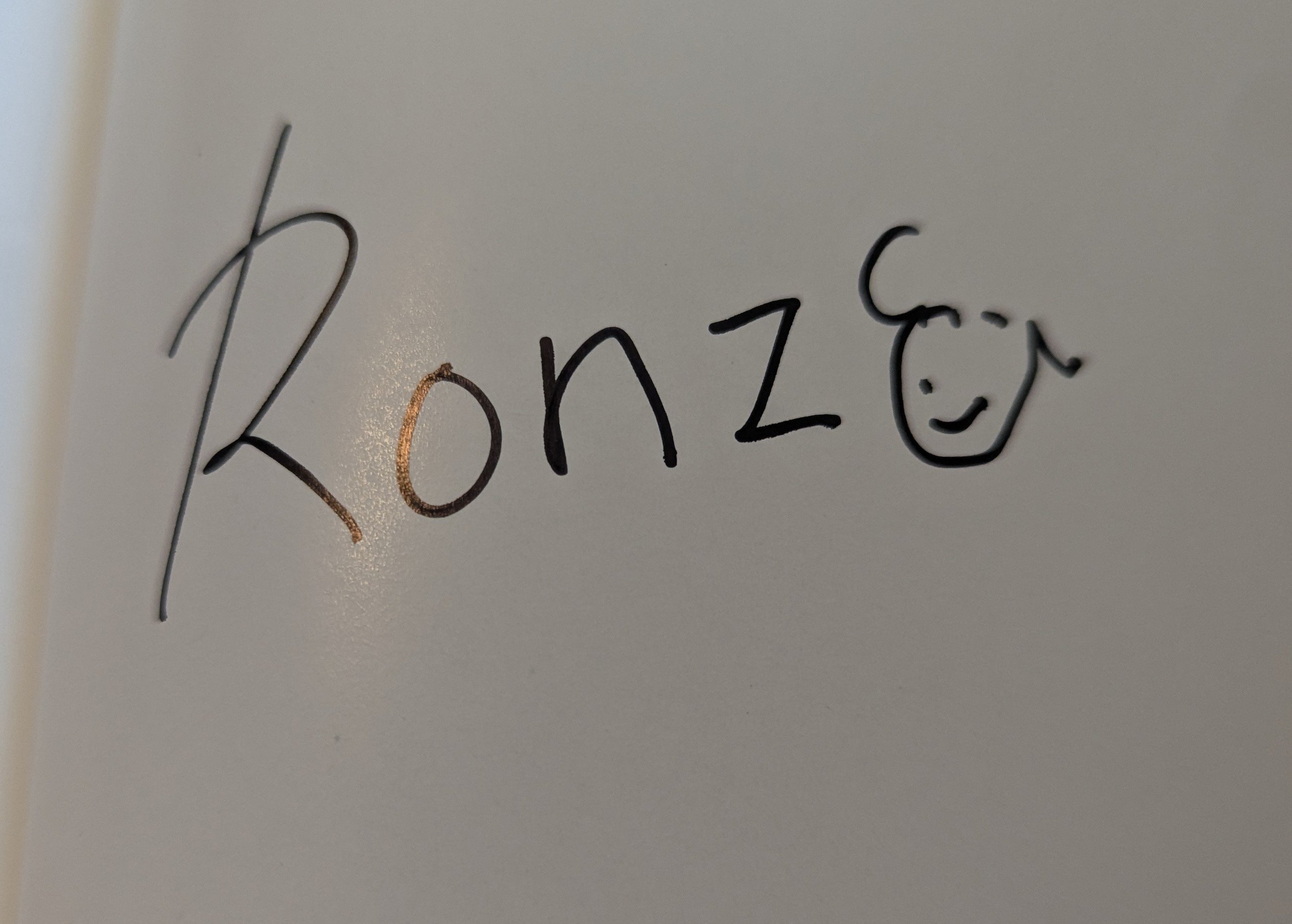 「書きやすいように『ロンズ』だけアルファベットに」「uはサンテ風に」そうして出来たサインがこちらです。