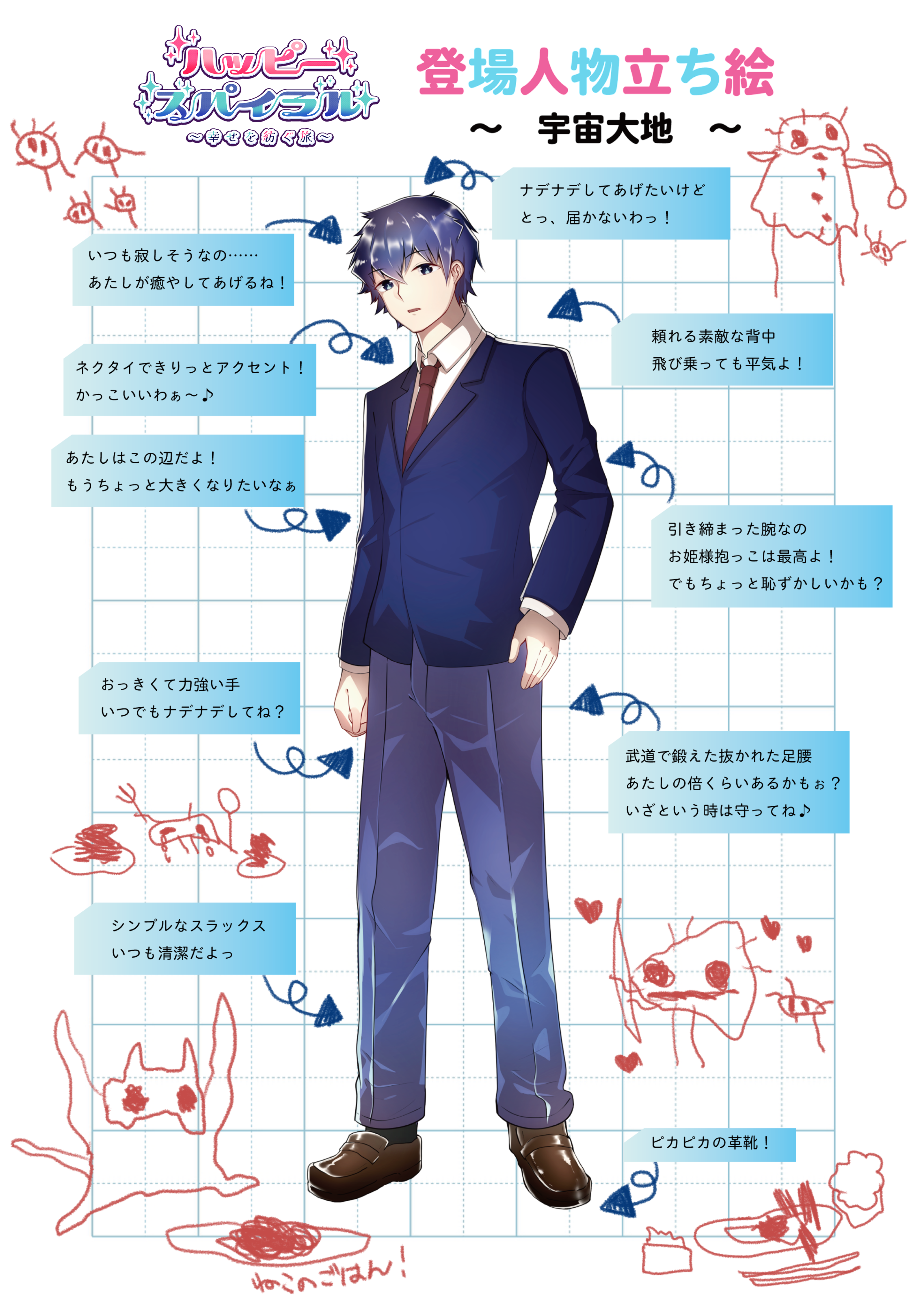 連載中のラブコメ小説「ハッピースパイラル ~幸せを紡ぐ旅~」の宇宙大地(主人公)の立ち絵となります。