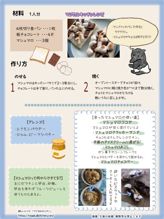 作中に出てきたマシュマロにちなんで、マシュマロチョコトーストのレシピカードをおまけに作ってみました。