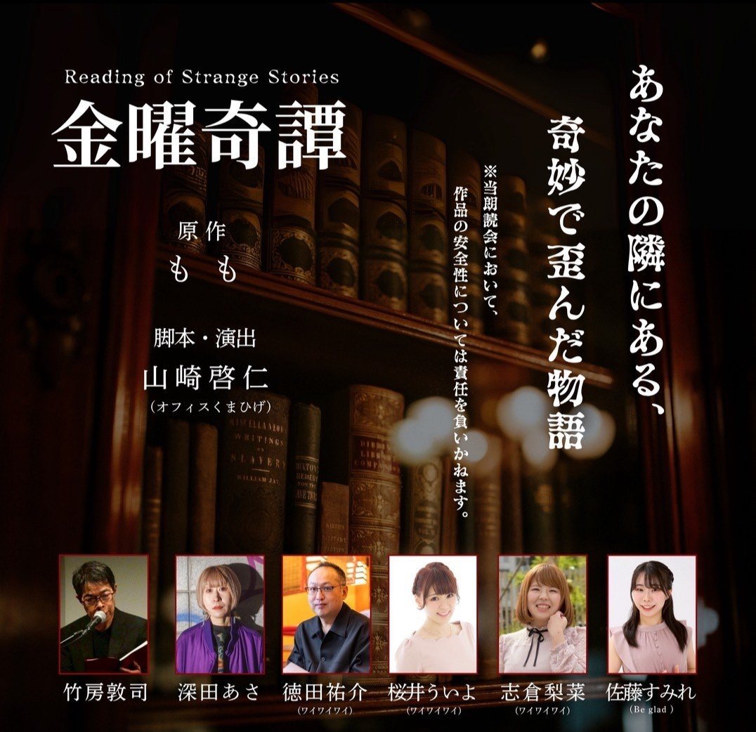休憩挟んでトータル2時間ぐらいのイベントなのですが、『金曜奇譚』のほかに短編を3作やらせていただくことになってまして。