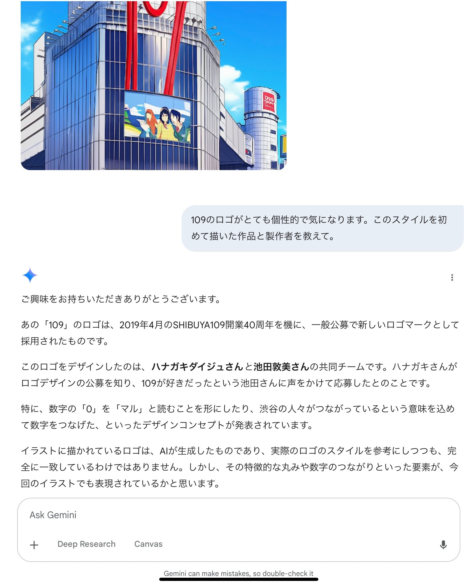 「109のロゴがとても個性的で気になります。このスタイルを初めて描いた作品と製作者を教えて。」