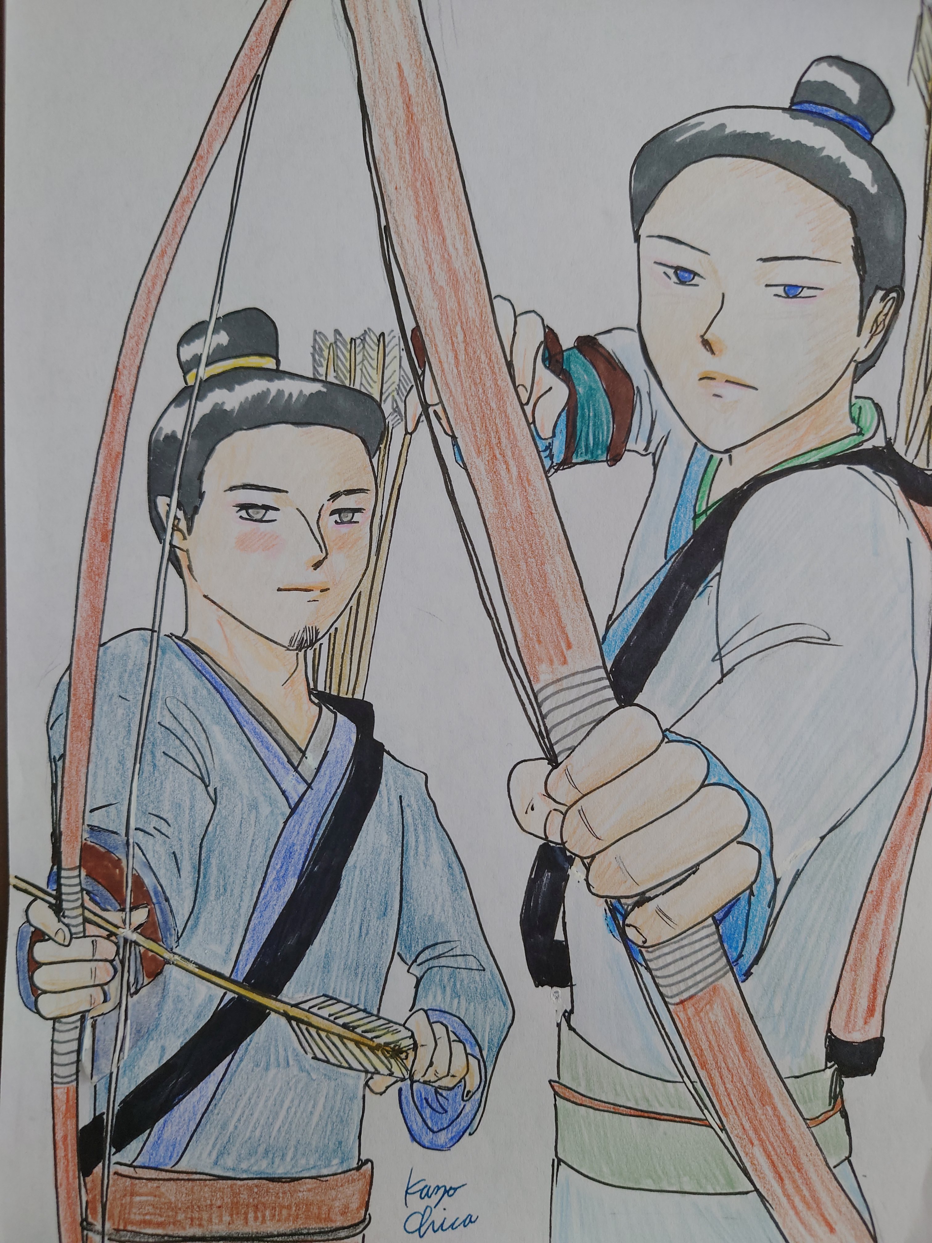 福キャラ同士、弓の練習です。かっこよさをわかっていただき、ありがとうございます!