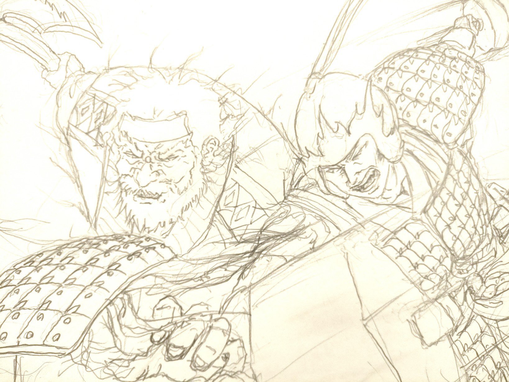 カイクーをどうしても描きたくて、このシーンを切り取りました。蝦夷の服は適当です。なんとなくこんな感じ、にしております。