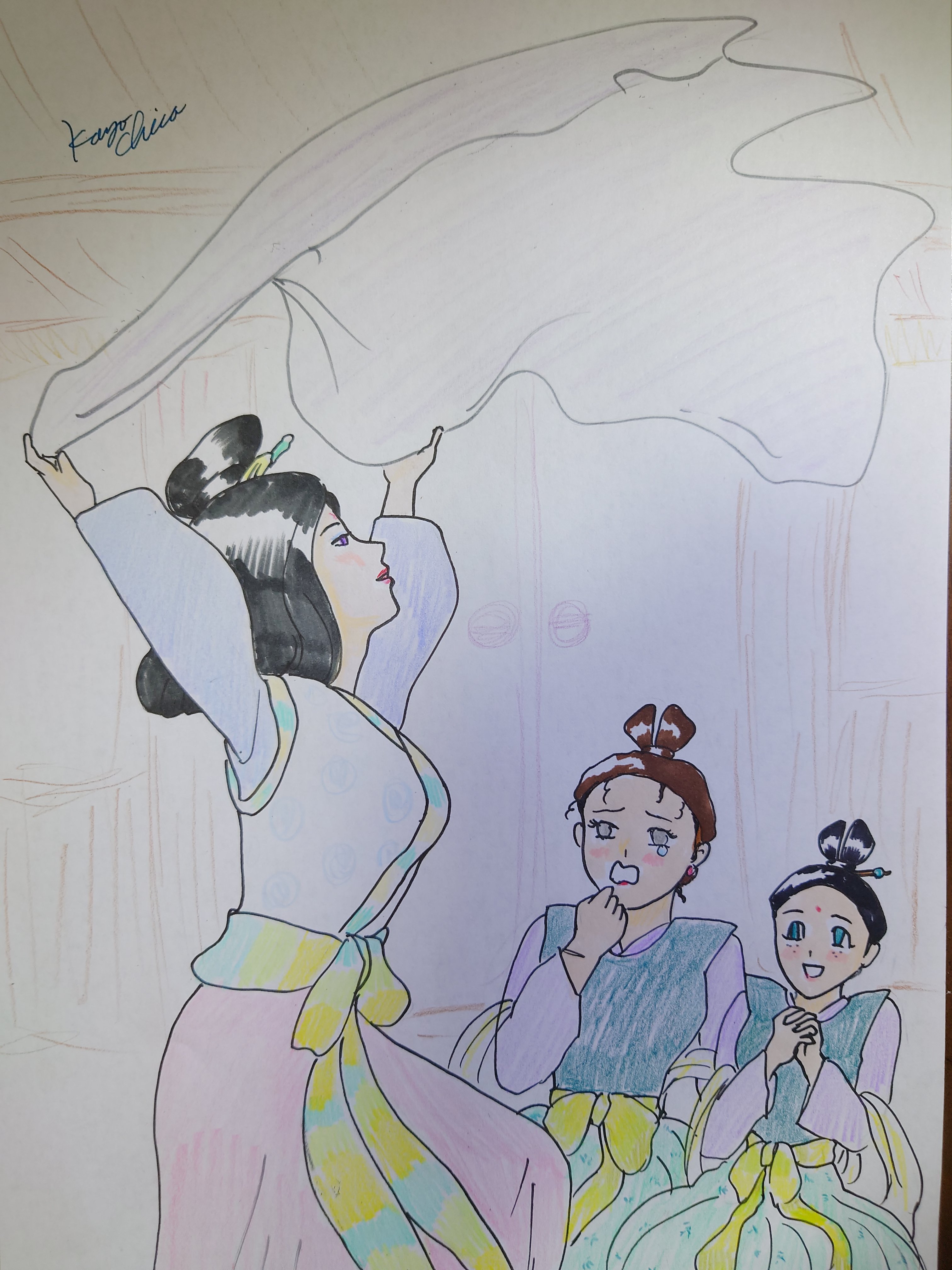 はい、大きい薄い紗を持ち、舞う、東舞です!