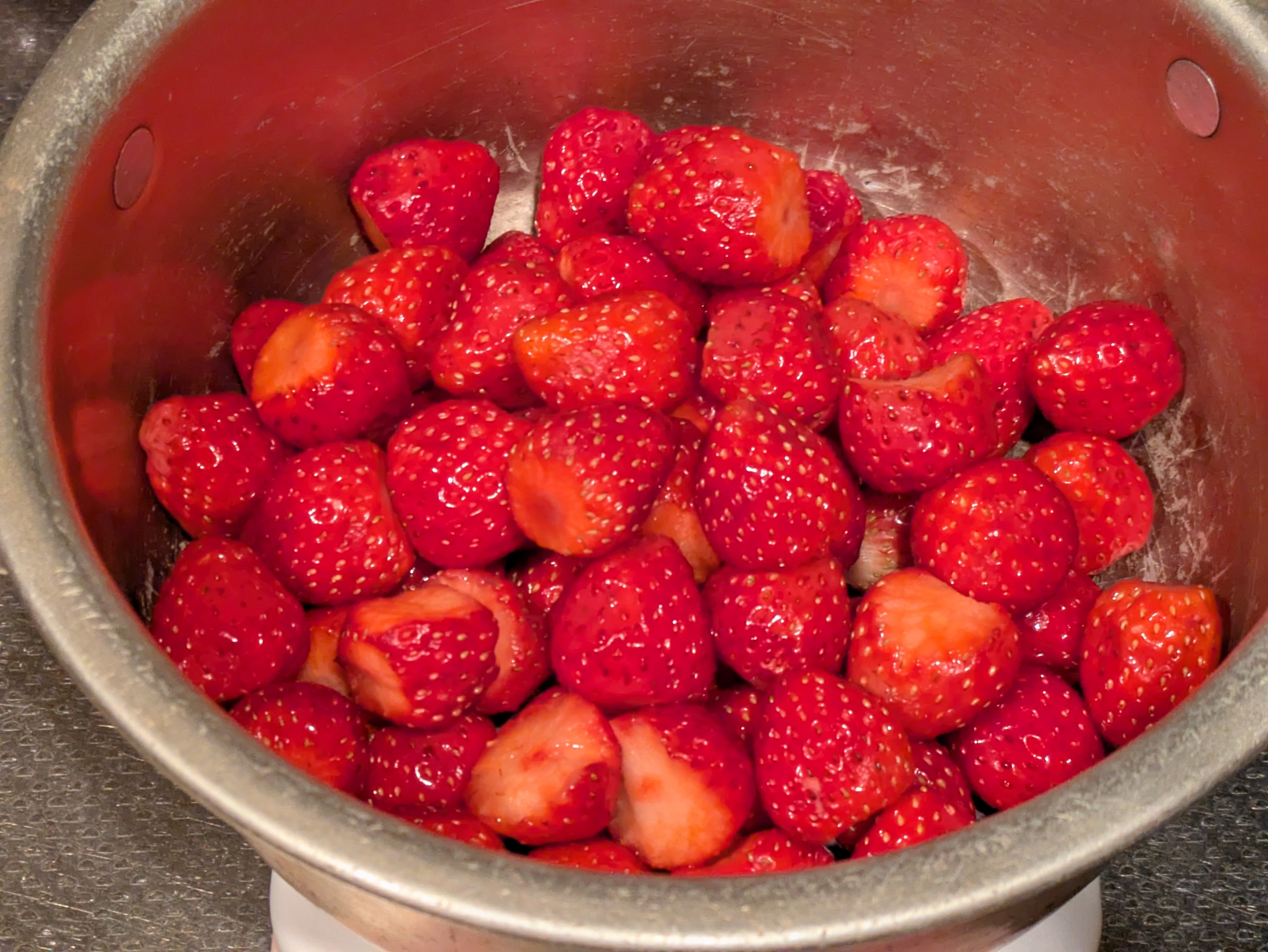 買ってきたイチゴがあまり甘みがなく美味しくないので、魔改造してやります。