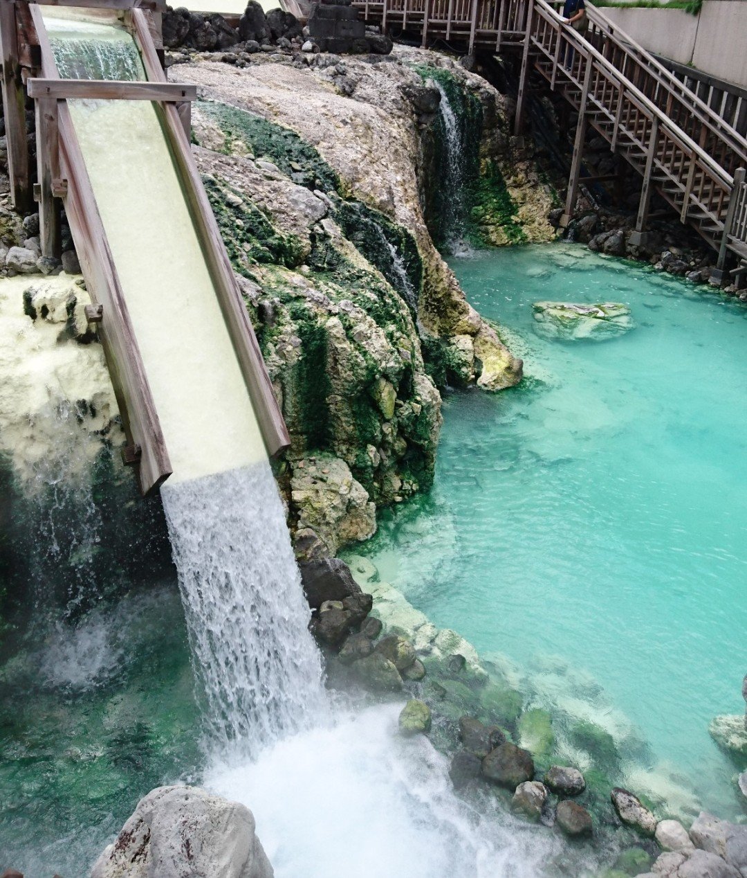 町全体が温泉の香りに満たされ、圧倒的な湯畑のエメラルドグリーンが美しい\(^o^)/🩵