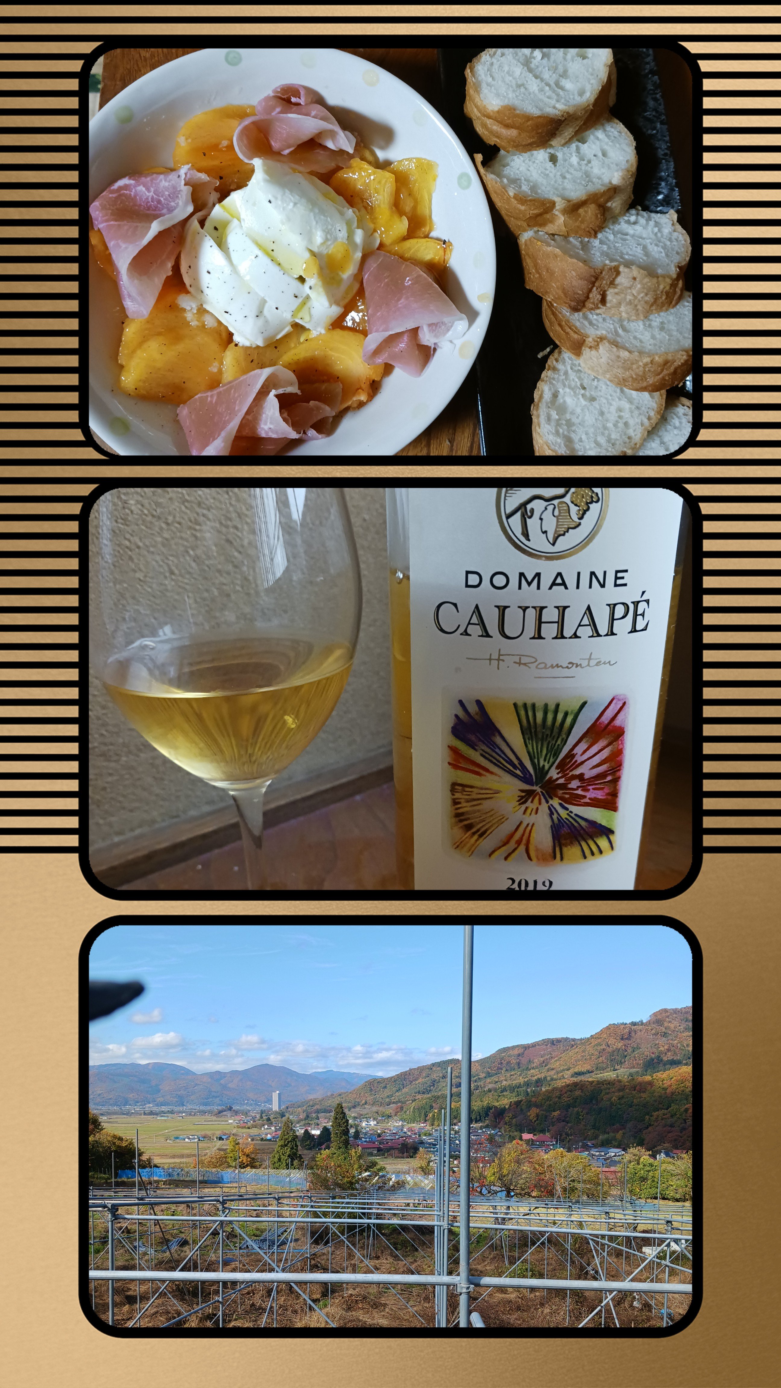 山の色が変わってきたところをさくらんぼハウスの上(屋根は撤去済)から撮ってみました。