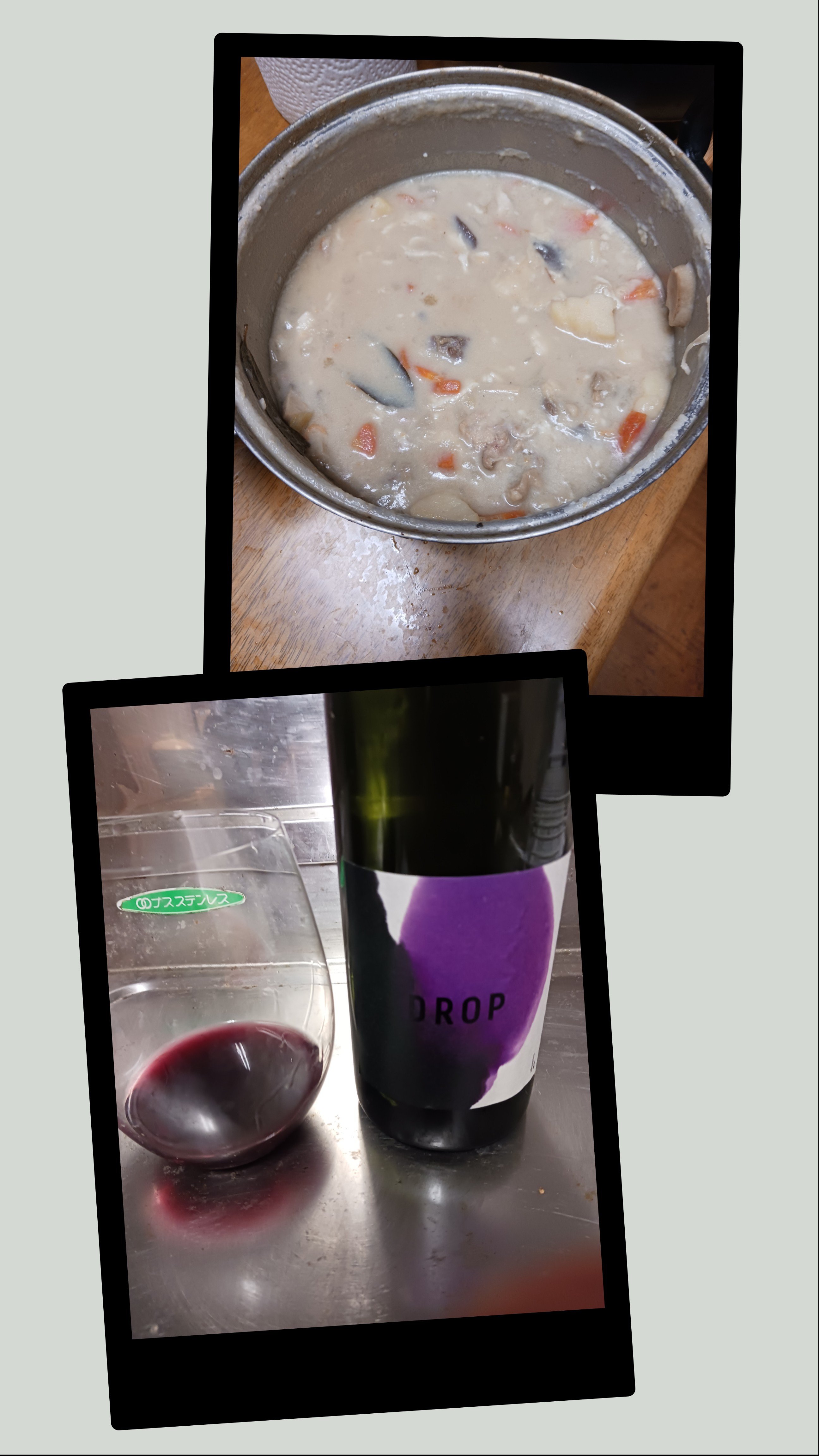 寒くなってきたのでクマゴロウ肉のシチューとワインです。