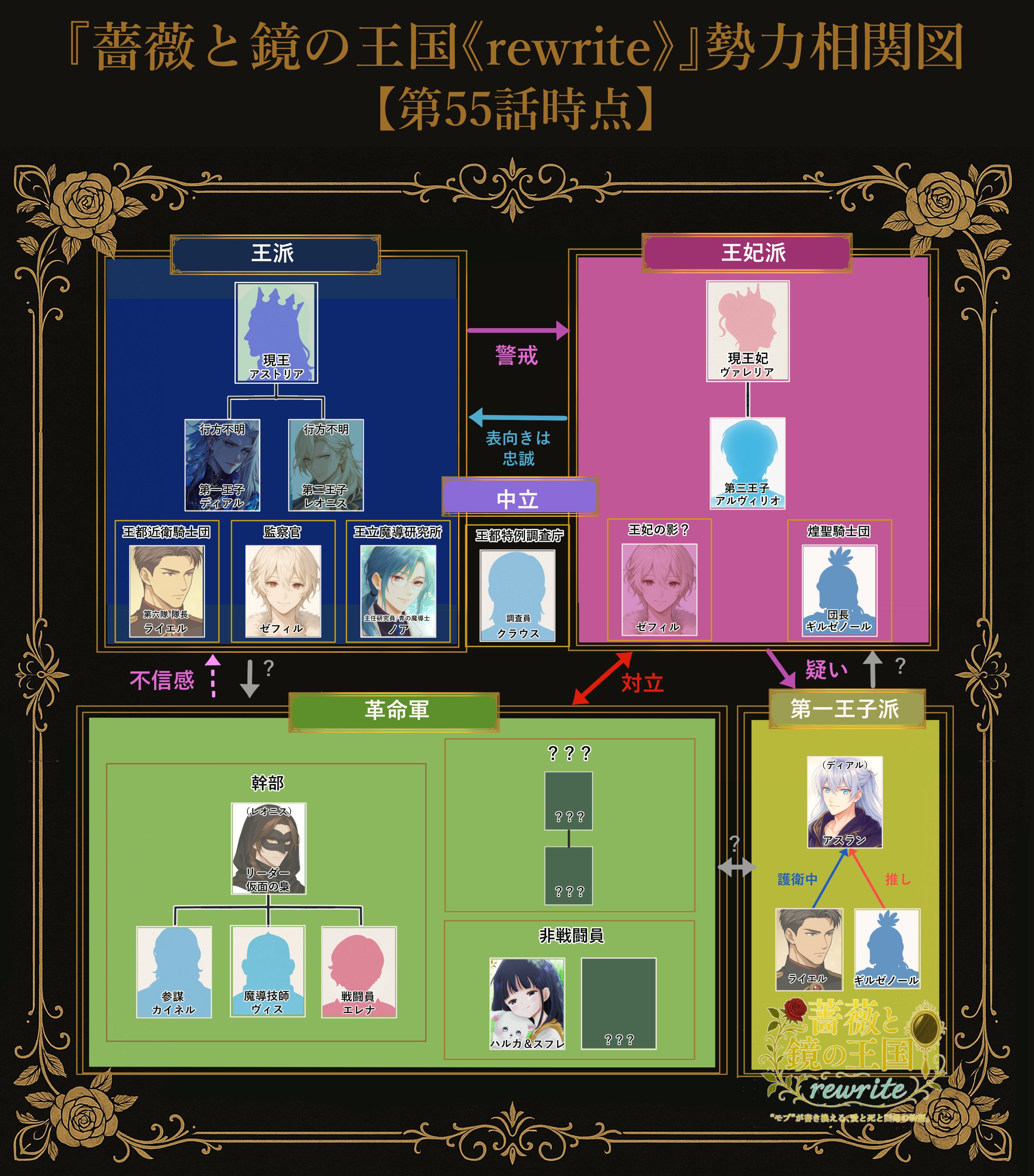 『薔薇と鏡の王国《rewrite》』勢力相関図(第55話時点)