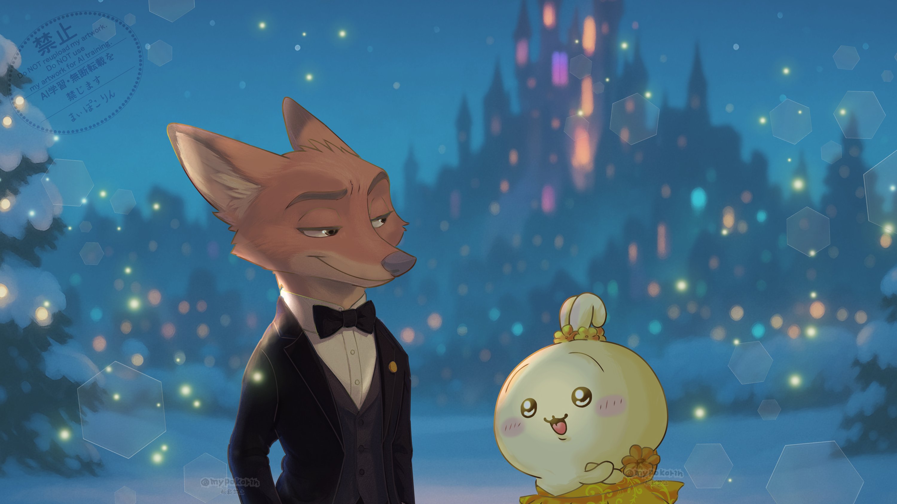 そしてその情熱のままに描いたズートピア2の劇中シーンのオマージュ:ニック×ちいかわのうさぎイラストです。