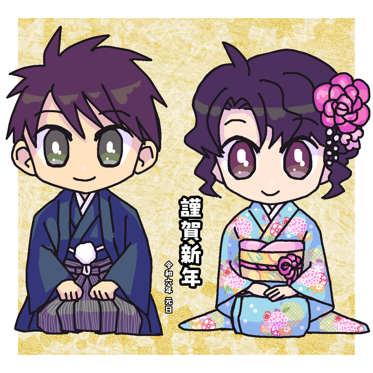 年賀イラストを描きました。長編小説の主人公に並んでもらったら、