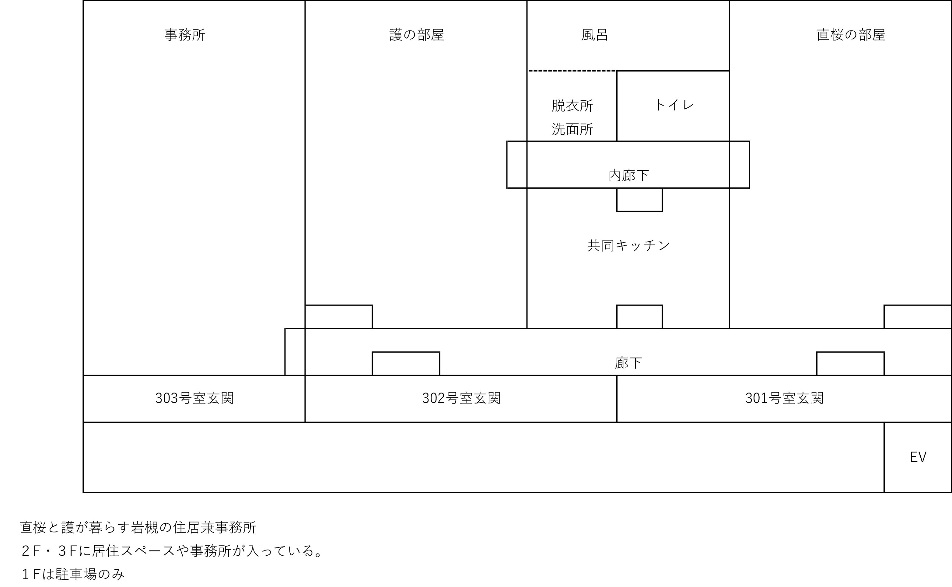 二人が住んでいるマンションはちょっと特殊なので見取り図を作りました。