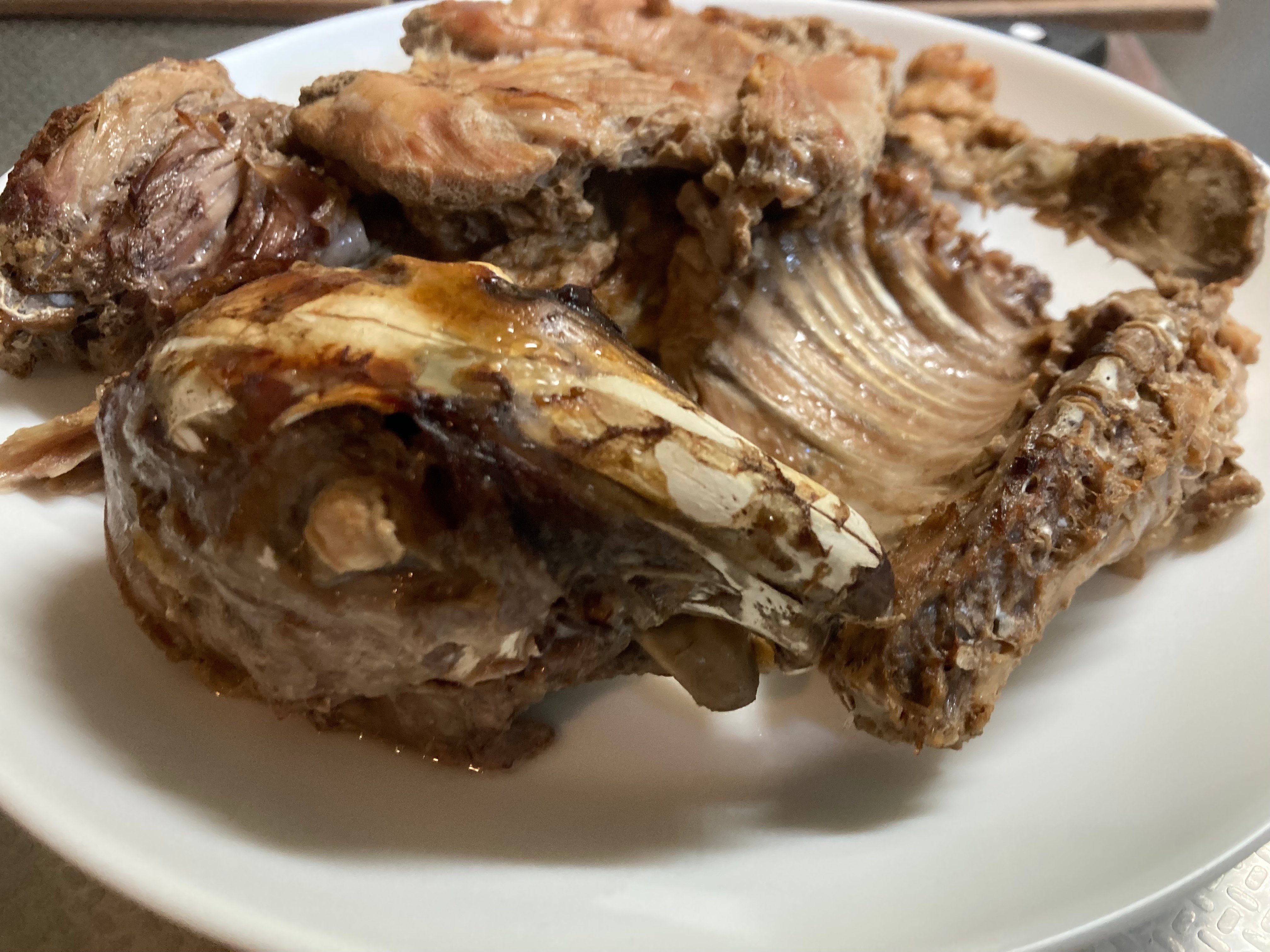 美味しいところは肋骨周りのスペアリブ、もも肉、そして背中の肉でした。