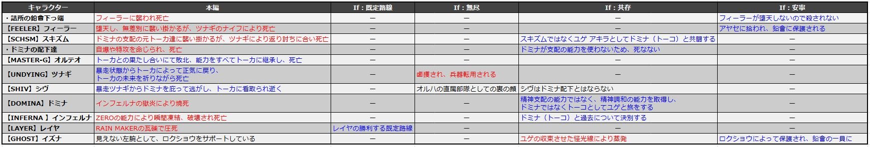 先日の「ストーリーマップ」に続き、今回は各キャラクターの結末を整理した一覧を公開します。