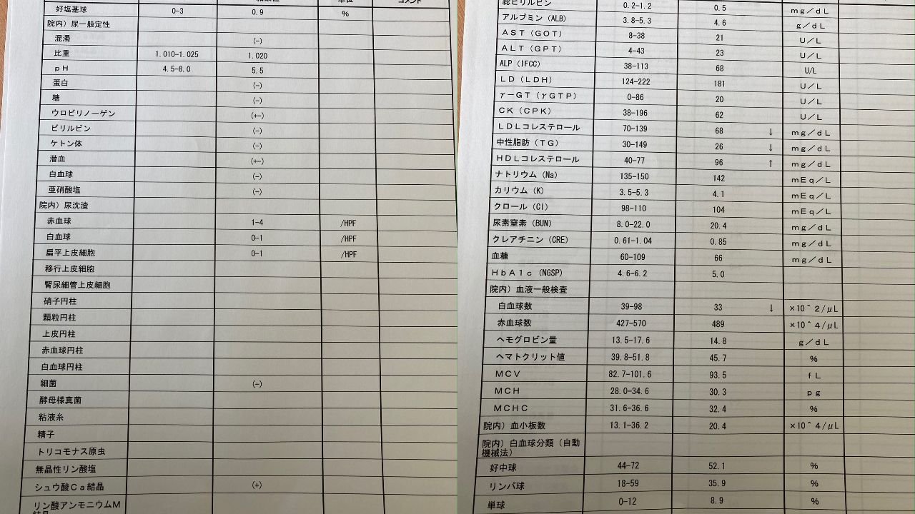 さて、こちらが自称健康マニアの33歳男性が先日受け取った健康診断(血液・尿検査)の結果である。