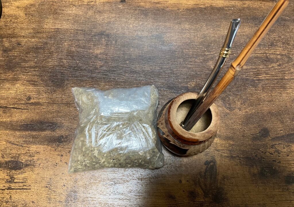 怪しい葉っぱとそれを飲むための道具(ただのマテ茶)