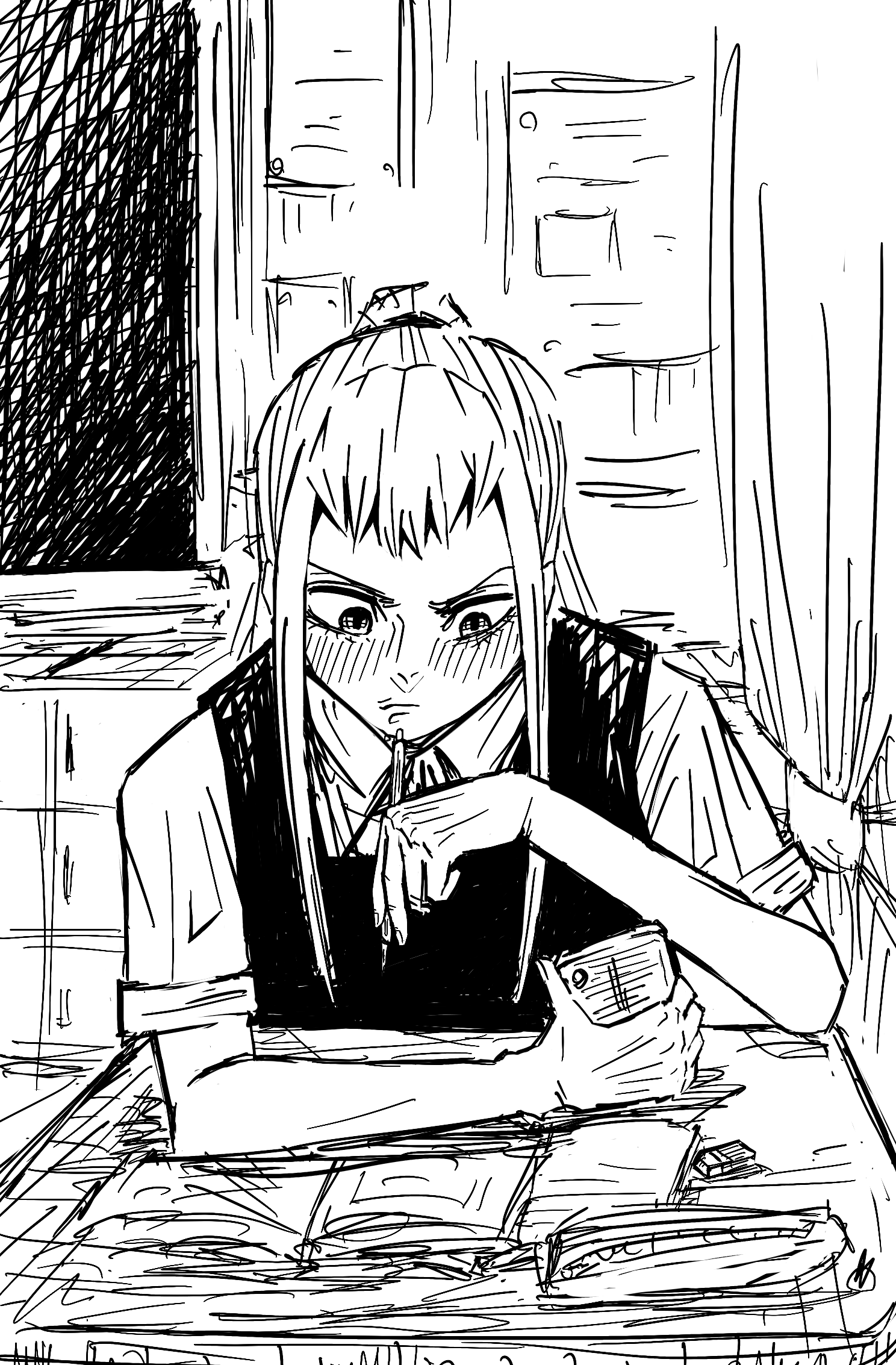 利き手なんて考えて無かったけど描き直すのが大変だなぁと思ったので水島さんは左利きになりましたので、今後ともよろしくお願いします。