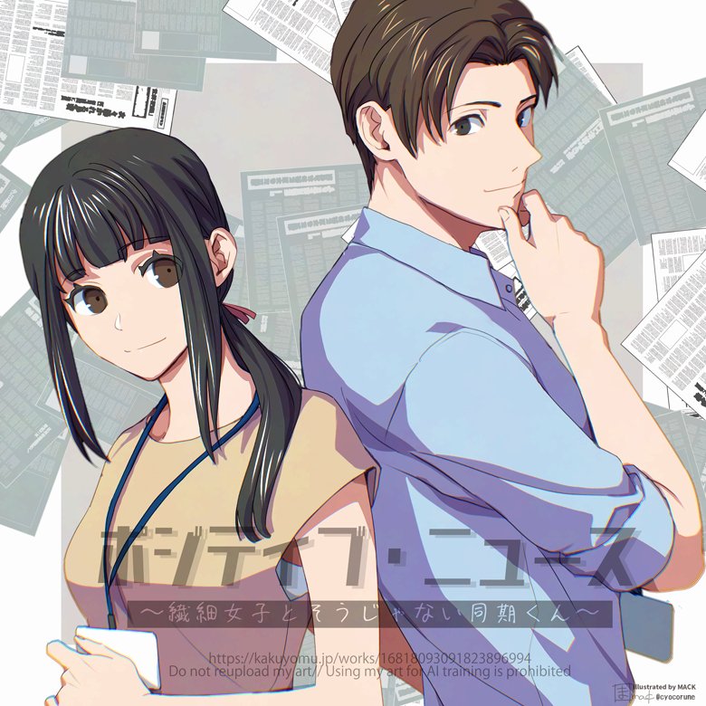 以前書いた短編「ポジティブ・ニュース 〜繊細女子とそうじゃない同期くん〜」に、MACK様よりファンアートをいただきました!!