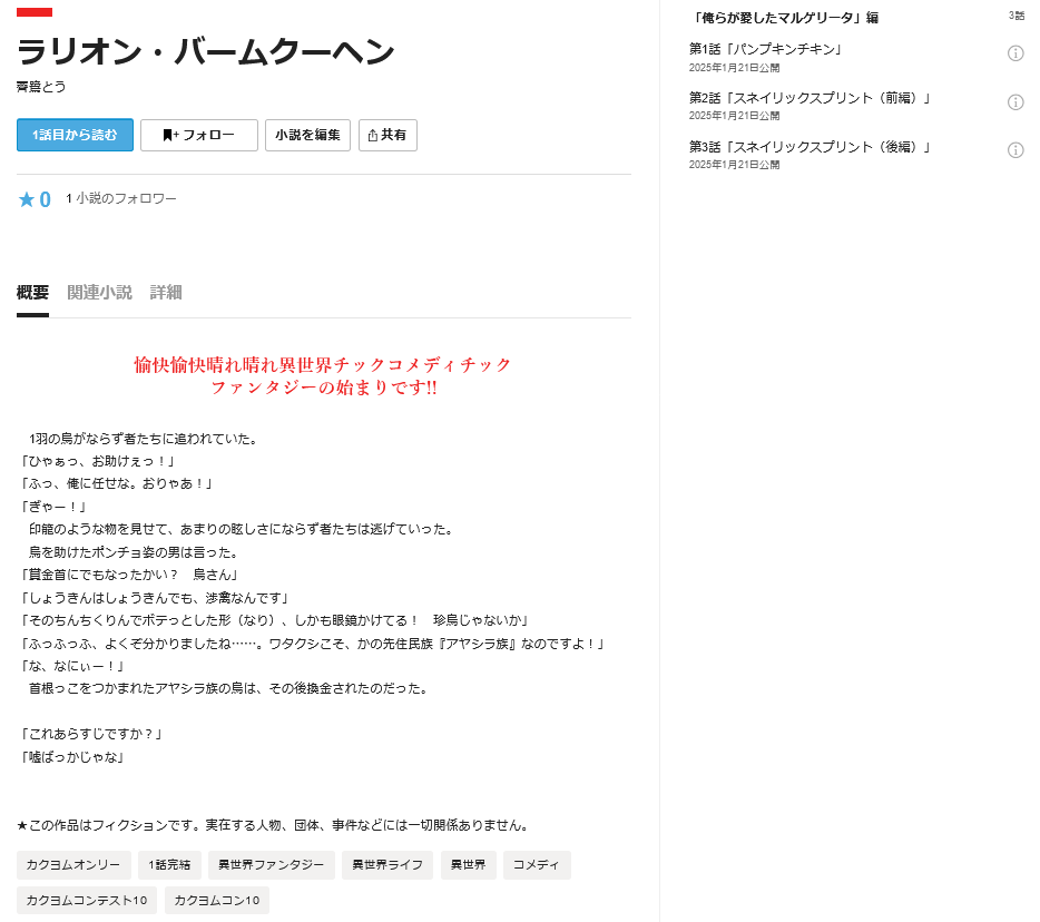 本日は、私初めての連載作品が公開されましたので、そのお知らせになります。