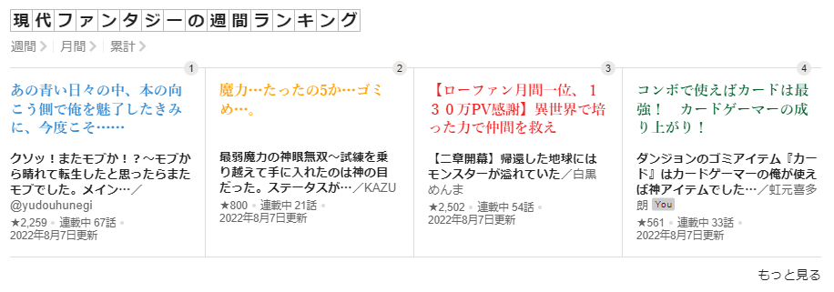 【ダンジョンのゴミアイテム『カード』はカードゲーマーの俺が使えば神アイテムでした!~パーティーを追放された最弱探索者、カードのコンボで成り上がる~】が現代ファンタジーの週間ランキングで4位になりました!